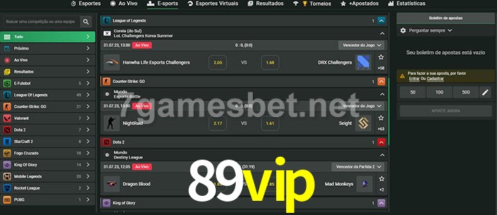 A aposta 89vip oferece aos jogadores a experiência mais conveniente de apostas em eSports!